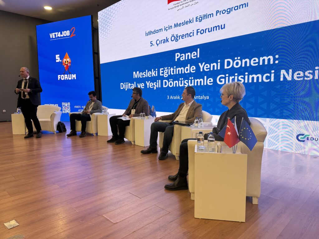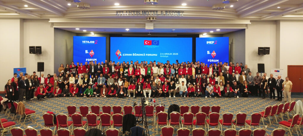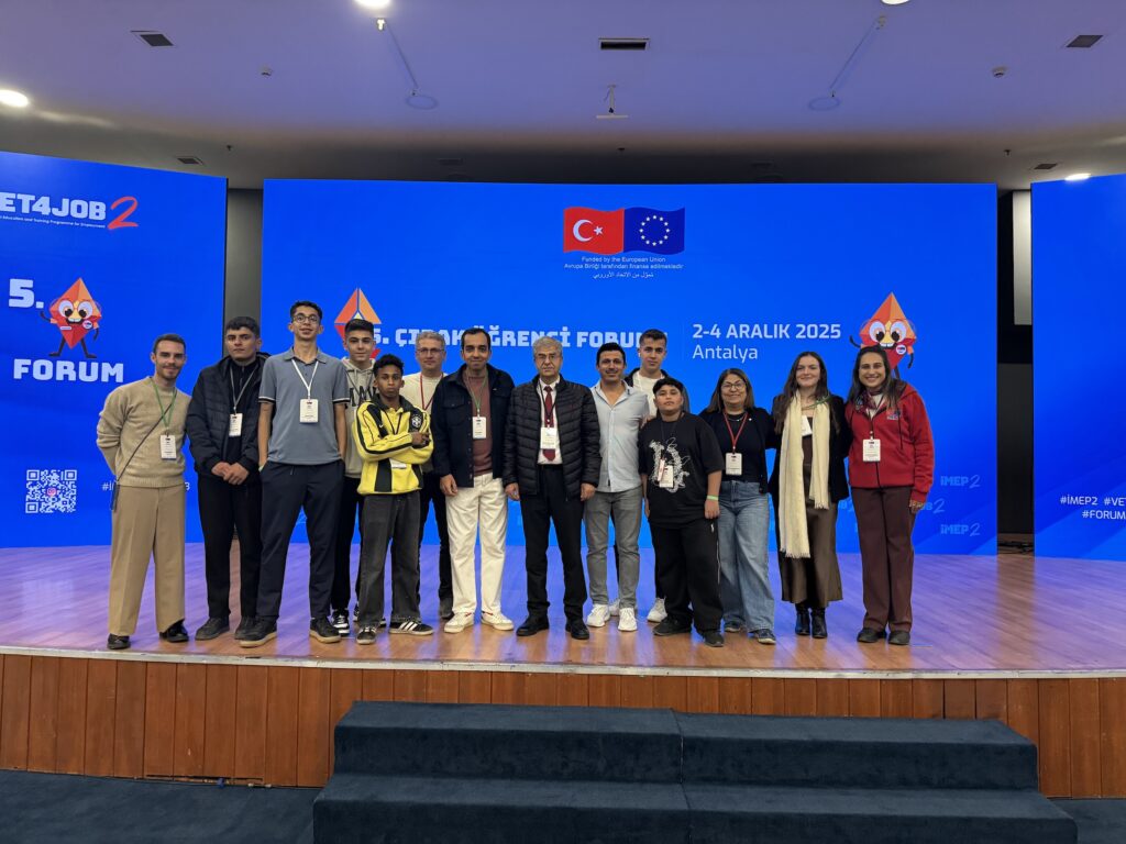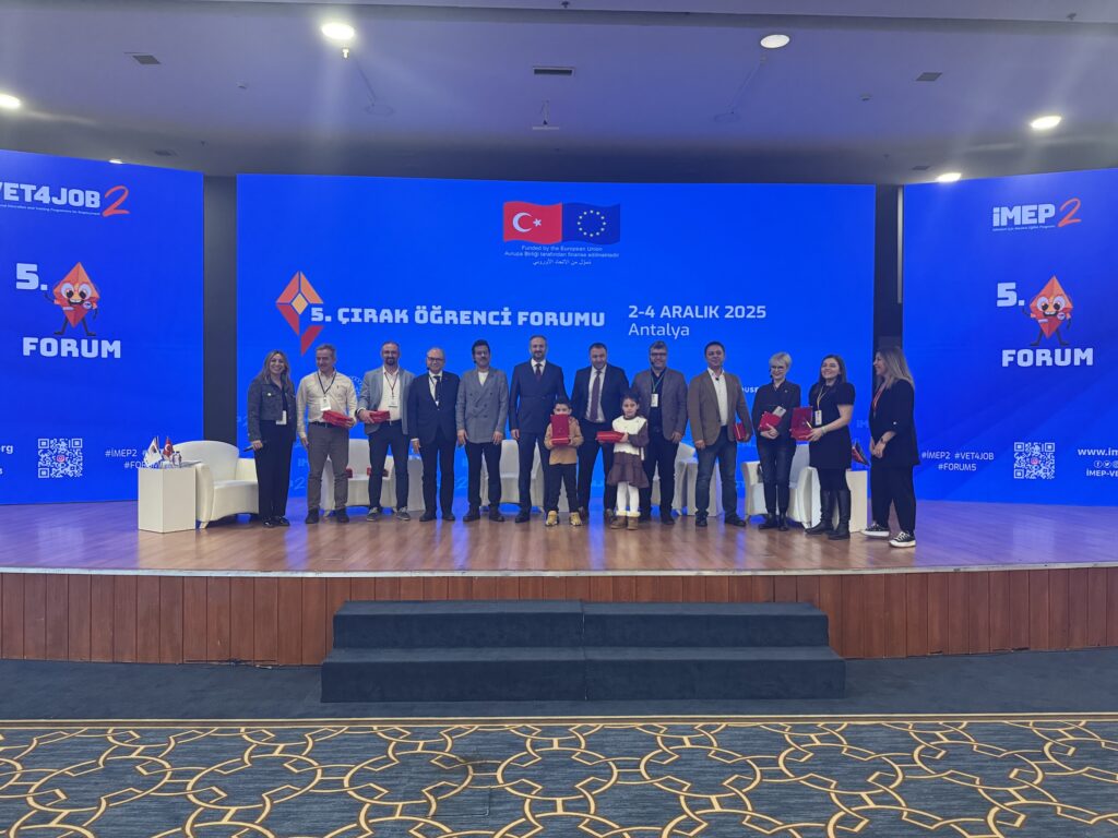 Avrupa Birliği tarafından desteklenen Millî Eğitim Bakanlığı Meslekî ve Teknik Eğitim Genel Müdürlüğü ve Türkiye Esnaf ve Sanatkârları Konfederasyonu (TESK) iş birliğinde Expertise France öncülüğünde yürütülen İstihdam için Mesleki Eğitim Programı (İMEP-2) kapsamında düzenlenen 5. Çırak Öğrenci Forumu, 02–04 Aralık 2025 tarihlerinde Antalya’da başarıyla gerçekleştirildi. 14 ilden lider çırak öğrenciler, lider öğretmenler, ESOB temsilcileri, mezun öğrenciler ile program paydaşlarından yaklaşık 200 kişinin katılımıyla gerçekleştirilen forumda; başta çırak öğrenciler olmak üzere tüm katılımcıların mesleki eğitimdeki ihtiyaçlarının dile getirildiği, dijital ve yeşil dönüşüm gibi alanlarda bilgi edinildiği kapsayıcı ve interaktif bir öğrenme ortamı sunuldu. Bu yılki foruma,